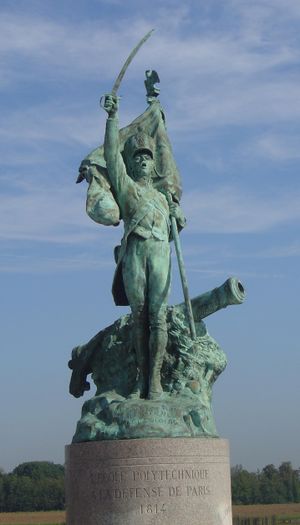 The cadets of Polytechnique rushed to the defence of Paris against the foreign armies in 1814. A statue set in the honour courtyard of the school commemorates this deed. A copy was installed in West Point.