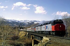 ![]() The Southwest Chief in Laguna, New Mexico, one of Amtrak's long-distance trains in the Western United States | |