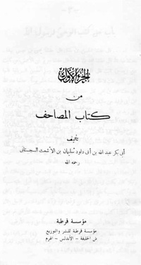 هو أبو بكر عبد الله بن سليمان بن الأشعث، الإمام العلامة الحافظ، شيخ بغداد أبو بكر السجستاني، صاحب التصانيف. ولد بسجستان، وسافر به أبوه وهو صبي.