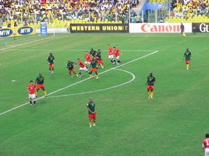 صورة من المباراة النهائية لكأس الأمم الأفريقية 2008 مع الكاميرن والتي فازت فيها مصر بالبطولة.