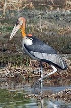 - وهذا الطائر كبير الحجم بحيث يصل طولها عندما يقف 145-150 سم ومع طول جناحيه 250 سم / وله أجنحة رمادية غامقة وأطراف الجناح رمادي فاتح بينما الصدر لونه أبيض وله جلد أحمر خارج من خلف الرقبة والعنق برتقالي اللون وله كيس في حلقه بينما الرأس عارية صفراء غامقة وبني فاقع والسيقان رمادية والمنقار رمادي أبيض اللون. وهي تشبه كثيرا أبو سعن الأفريقي.