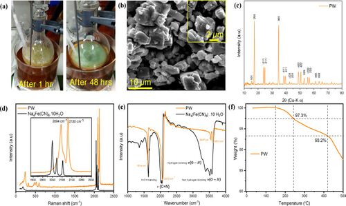 تم تصنيع Poly-PW باستخدام طريقة الترسيب. في البداية، تم إذابة حديدوسيانيد الصوديوم (Na4Fe(CN)6.H2O) في ماء منزوع الأيونات (DI) للحصول على محلول A، بينما تم إذابة سترات الصوديوم وكبريتات الحديدوز (FeSO4·7H2O) في ماء منزوع الأيونات لتحضير المحلول B.