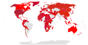 Red is associated with dominance in a number of animal species.[39] For example, in mandrills, red coloration of the face is greatest in alpha males, increasingly less prominent in lower ranking subordinates, and directly correlated with levels of testosterone.[40] Red can also affect the perception of dominance by others, leading to significant differences in mortality, reproductive success and parental investment between individuals displaying red and those not.[41] In humans, wearing red has been linked with increased performance in competitions, including professional sport[42][43] and multiplayer video games.[44] Controlled tests have demonstrated that wearing red does not increase performance or levels of testosterone during exercise, so the effect is likely to be produced by perceived rather than actual performance.[45] Judges of tae kwon do have been shown to favor competitors wearing red protective gear over blue,[46] and, when asked, a significant majority of people say that red abstract shapes are more "dominant", "aggressive", and "likely to win a physical competition" than blue shapes.[39] In contrast to its positive effect in physical competition and dominance behavior, exposure to red decreases performance in cognitive tasks[47] and elicits aversion in psychological tests where subjects are placed in an "achievement" context (e.g. taking an IQ test).[48]