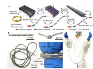 في 13 أبريل 2022، طور فريق بحث تقوده الصين قماشاً يقولون إنه يمكن أن يولد الطاقة من الحرارة للإلكترونيات القابلة للارتداء أو يساعد في تبريد الناس في الصيف.[1] وفقاً للفريق، يمكن أن يولد النسيج الكهروحراري، الذي يشبه رباط المعصم ويمكن لفه وتعقيده وثنيه وتمديده، الطاقة لجهاز مثل عداد الخطى أو مصفوفة LED. قال ژانگ كون، المؤلف المقابل للدراسة وأستاذ في كلية المنسوجات بجامعة دونگهوا في شانغهاي: "يبدو الأمر وكأنه سوار معصم عادي عند ارتدائه على المعصم". "يمكن أن تكون المنسوجات أساساً جيداً للأجهزة القابلة للارتداء. يمكننا استخدام الأوتار والمنسوجات الكهروحرارية لصنع مولد كهربائي حراري مريح يمكنه توليد الكهرباء وضبط درجة حرارة الجسم". ونُشرت الدراسة في المجلة الشهرية علوم الطاقة والبيئة في بريطانيا الشهر الماضي.