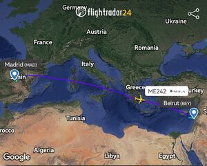 في 15 أغسطس 2022، أفاد موقع إنتلسكاي المتخصص بتعقب حركة الملاحة الجوية، بأنه يوم الاربعاء 10 أغسطس 2022، كان سلاح الجو اليوناني، بعد تلقيه إشارة من مركز التحكم في حركة الطيران الجوي التابع للناتو في إسپانيا (CAOC Torrejón)، يعترض طائرة إير باص إيه331 تابعة لشركة طيران الشرق الأوسط اللبنانية، على متنها 145 راكباً متجهة من العاصمة مدريد إلى بيروت.