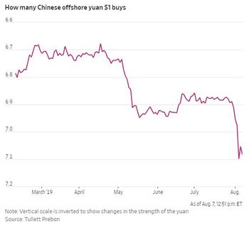 وواصل اليوان الصيني الانخفاض ليبلغ معدل صرفه 7.1 يوان للدولار.[1]