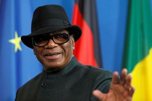 الرئيس المالي ابراهيم أبو بكر كيتا يغادر مؤتمراً صحفياً بعد محادثات مع المستشارة الألمانية أنگلا مركل، برلين، ألمانيا، 8 فبراير 2019.