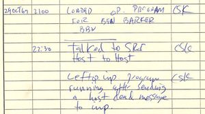 وثيقة تاريخية: أول سجل ARPANET IMP log: أول رسالة، على الإطلاق، تُطلق عبر أرپانت، الساعة 10:30 مساء، 29 أكتوبر 1969. هذا المقتطف من سجل IMP ، المحفوظ في UCLA، يصف إعداد نقل رسالة من الحاسوب المضيف UCLA SDS Sigma 8 إلى الحاسوب المضيف SRI SDS 940