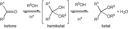 عادة ما يُميَّز بين الكيتال وبين الأستال حيث يمتلك الكيتال ذرتي كربون مرتبطتين بمجموعة R، في حين يمتلك الأسيتال ذرة واحدة أو اثنتين من الكربون مرتبطة بمجموعة R مثل H-. أما الاصطلاحات الحديثة فتعتبر الكيتال مجموعة جزئية من الأسيتال.