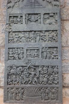 Several Yadava feudatories kept shifting their allegiance between the Yadavas and the Hoysalas, and tried to assert their independence whenever presented with an opportunity. Simhana's general Bichana subdued several such chiefs, including the Rattas, the Guttas of Dharwad, the Kadambas of Hangal, and the Kadambas of Goa.[46] The Kakatiya king Ganapati served him as a feudatory for several years, but assumed independence towards the end of his reign. However, Ganapati did not adopt an aggressive attitude towards the Yadavas, so no major conflict happened between the two dynasties during Simhana's reign.[47]