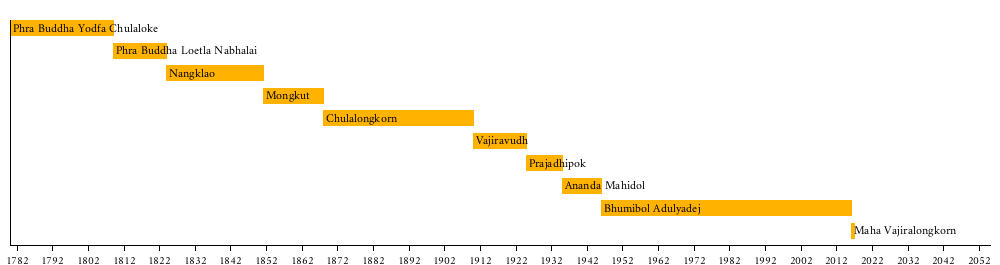 الأسرة الحاكمة في مملكة تايلند (مملكة سيام) 6 أبريل 1782−الحاضر |