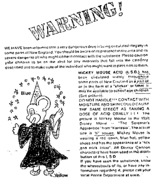 - ^ Mikkelson, Barbara (2007-01-28). "snopes.com: LSD Tattoos". Urban Legends Reference Pages. Retrieved 2010-08-28.