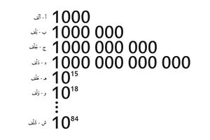 تعتمد تسمية الأعداد الصواتم باعتماد العدد ألف هو الأساس، ومن ثمّ يُعوض الحرف الأوّل من كلمة ألْف وهو « الألِف » بالحرف الذي يليها من الترتيب الأبجدي للحروف العربية، وهو ما يعرف بحساب الجمل، فيكون هو حرف الباء ثم الجيم فالدال.. الخ، فيكون العدد ألف ألف (مليون) بلْف، وألف ألف ألف (مليار) جلْف، وهكذا حتى شلف، وعلى ذلك تكون التسمية على النحو التالي: الآحاد ثم العشرات ثم المئات ثم الآاف ثم عشرات الآلاف ثم مئات الآلاف، ثم الأبلاف ثم عشرات الأبلاف ثم مئات الأبلاف، ثم الأجلاف ثم عشرات الأجلاف ثم مئات الأجلاف، ثم الأدلاف ثم عشرات الأدلاف ثم مئات الأدلاف ثم الأهلاف، وهكذا حتى الأشلاف، والشلف هو العدد الذي يُرمز إليه بواحد ثم أربعة وثمانين صفرًا (8410).[1]