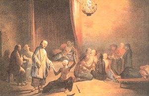 وكر الأفيون في الصين في القرن الثامن عشر ، برؤية فناني الغرب