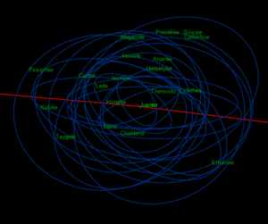 28 XL Mneme [] 2 0.001 5 21,129,786 −627.48 149.732° 0.3169 2003 Gladman et al. Ananke