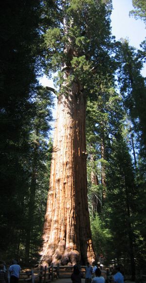 باستثناء الأشجار متعددة السيقان، جنرال شرمان، سيكويا عملاقة (سيكويا ضخمة) وهي شجرة بحجم 1،487 m3 (52،500 cu ft) وستحمل لقب أكبر كائن حي في العالم، إذا قيست من حيث الحجم.[7]يبلغ ارتفاع هذه الشجرة 83.8 m (275 ft) ويقدر وزن الجذع وحده 2،000 short ton (1،800 t).