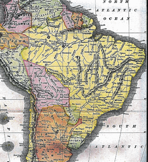 Map of Brazil during República Velha, 1892. Note the differences from current western borders in the areas of Pantanal and Amazonia — including the lack of the Acre, then still part of Bolivia