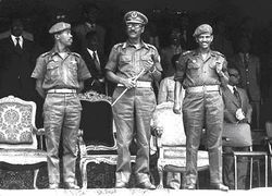 منجستو (يسار)، أمان عندوم (وسط) و تفري بنتي (يمين)، في أگوردات، إرتريا، 1974.