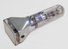 The funnel can be separated from the screen of the CRT using laser cutting, diamond saws or wires or using a resistively heated nichrome wire.[24][25][26][27][28]