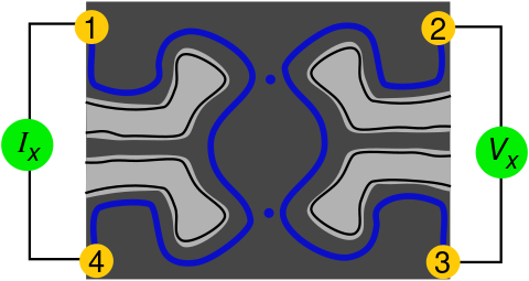 - ^ Camino, Fernando E.; Zhou, Wei; Goldman, Vladimir J. (17 أغسطس 2005). "Realization of a Laughlin quasiparticle interferometer: Observation of fractional statistics" (PDF). Physical Review B. 72 (7): 075342. arXiv:cond-mat/0502406. Bibcode:2005PhRvB..72g5342C. doi:10.1103/PhysRevB.72.075342. S2CID 52245802. Archived from the original (PDF) on 19 يونيو 2015., see fig. 2.B.