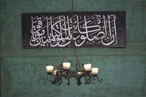 إِنَّ الصَّلَاةَ كَانَتْ عَلَى الْمُؤْمِنِينَ كِتَابًا مَّوْقُوتًا، سورة النساء: 103، مكتوبة بخط عربي في مدخل مسجد إسطنبول الجديد 1597م.