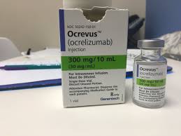 اعتمدته ادارة الغذاء والدواء في مارس 2017 كعلاج للتصلب المتعد، واعتمدته أولاً كعلاج للشكل المتقدم من المرض؛ اكتشفته وطورته وتسوقه جينينتك، إحدى فروع هوفمان-لا روش تحت الاسم التجاري أوكريڤوس.[2][3] مع اعتمادها إياه، طالبت ادارة الغذاء والدواء الشركات أيضاً بعقد عدة تجارب سريرية من المرحلة 4 للوقوف بشكل أفضل على سلامة وفعالية الدواء للشباب، أخطار السرطان، وتأثيره على الحوامل والأطفال.[4]