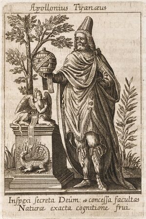 Apollonius of Tyana (باليونانية قديمة: Ἀπολλώνιος; العربية: بلينس; بالسنسكريتية: अपालुन्यःc. 15 – c. 100 AD[2]) was a first-century Greek philosopher and religious leader from the town of Tyana, Cappadocia in Roman Anatolia, who spent his life travelling and teaching in the Middle East, North Africa and South Asia. He is a central figure in Neopythagoreanism and was one of the most famous "miracle workers" of his day.