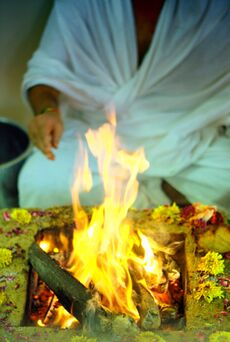 Agni (fire) is a part of major rites-of-passage rituals such as weddings and cremation in Indian religions.