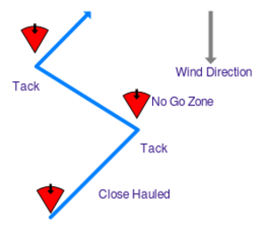 يُسمّى تغيير اتجاه القارب نحو الريح الإبحار على الريح ، أو الهجوم نحو الريح ولا يمكن لأي قارب أن يبحر مباشرة عكس اتجاه الريح. وإذا حدث ذلك فإن الشراع يرفرف كالعلم، وبذلك يصبح عديم الفاعلية. إلا أنه يمكن للقارب أن يتغلّب على الريح بتغيير اتجاهه، أو بمتابعة السير بشكل متعرج. وعلى العموم يمكن للقارب الشراعي أن ينطلق في حدود 45° من الاتجاه الذي يهب منه الريح قبل بدء رفرفة الشراع وفقدان قوة الدفع.