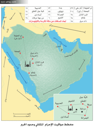- ذو الحليفة: وهو قريب من المدينة المنورة في الجهة الجنوبية منها، ويسمّى (أبيار علي)، فمن كان من أهل المدينة النبوية أو طريقه يمرّ به فإنه يُحرم منه.