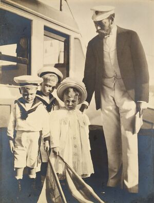 Edward was kept under the strict tutorship of Hansell until almost thirteen years old. Private tutors taught him German and French.[12] Edward took the examination to enter the Royal Naval College, Osborne, and began there in 1907. Hansell had wanted Edward to enter school earlier, but the prince's father had disagreed.[13] Following two years at Osborne College, which he did not enjoy, Edward moved on to the Royal Naval College at Dartmouth. A course of two years, followed by entry into the Royal Navy, was planned.[14]