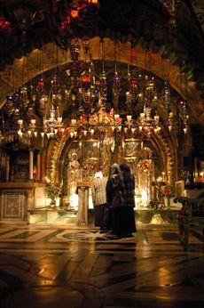 The Church of the Holy Sepulchre, venerated by Christians as the site of the Crucifixion of Jesus.[33]