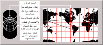 - نقل الإحداثيات الجغرافية (خط الطول وخط العرض) إلى الاحداثيات المستوية (سينات وعينات x,y).