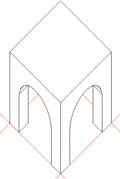 An example of the limitations of isometric projection. The height difference between the red and blue balls cannot be determined locally.