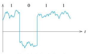 وبدلاً من ذلك ، يمكن اعتبار الإشارة الرقمية بمثابة تسلسل رموز ممثلة بمثل هذه الكمية المادية.[13] قد تكون الكمية الفيزيائية تيارًا كهربائيًا أو جهدًا متغيرًا ، أو شدة ، أو طور أو استقطاب بصري أو غير ذلك المجال الكهرومغناطيسي ، ضغط صوتي ، مغنطة وسائط تخزين مغناطيسي ، إلخ. الإشارات الرقمية موجودة في جميع الإلكترونيات الرقمية ، ولا سيما معدات الحوسبة و نقل البيانات.