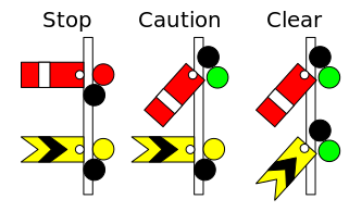 أحد أقدم وسائل إشارة السكك الحديدية الثابتة هي السيمافور semaphore. These signals display their different indications to train drivers by changing the angle of inclination of a pivoted 'arm'. Semaphore signals were patented in the early 1840s by Joseph James Stevens, and soon became the most widely-used form of mechanical signal. Designs have altered over the intervening years, and colour light signals have replaced semaphore signals in some countries, but in others they remain in use.