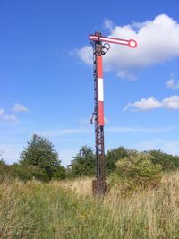 Semaphores come in lower quadrant and upper quadrant forms. In a lower quadrant signal, the arm pivots downwards for the less restrictive (known as "off") indication. Upper quadrant signals, as the name implies, pivot the arm upward for "off".