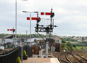 أول سيمافور سكك حديدية أنشأه تشارلز هتن گريگوري في سكك حديد لندن وكرويدن (لاحقاً London Brighton and South Coast Railway) at New Cross, southeast London, about 1842 on the newly enlarged layout also accommodating the South Eastern Railway.[1] The semaphore was afterwards rapidly adopted as a fixed signal throughout Britain, superseding all other types in most uses by 1870. Such signals were widely adopted in the U.S. after 1908.