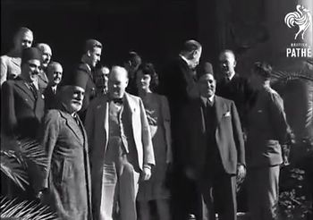 الجنراليسّيمو تشيانگ كاي شك، فرانكلين روزڤلت، ونستون تشرشل ومدام تشيانگ في مؤتمر القاهرة، 25 نوفمبر 1943
