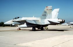 مكدونل دوگلس (الآن بوينگ) إف\إيه - 18 هورنت إنگليزية: F/A-18 Hornet هي مقاتلة متعددة المهام أمريكية تعمل في كل الظروف الجوية، وبإمكانها تدمير الأهداف الجوية والبرية. تستطيع العمل من حاملات الطائرات والقواعد البرية، وبإمكان الطائرة القيام بعدة أدوار، وهي التفوق الجوي، والعمل كمقاتلة مرافقة، وإخماد الدفاعات الجوية المعادية، والاستطلاع، والدعم الجوي ومهام هجومية باليل والنهار.[1]