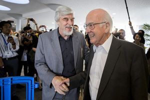 من بين الحضور كان الروفيسور بيتر هيجز , الذى تنبأ بوجود بوسون هيجز