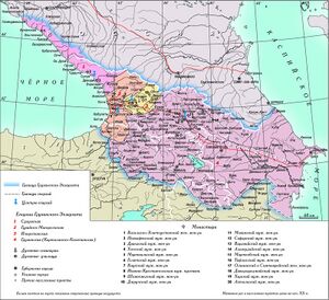 After Imperial Russia annexed Georgia (the eastern part in 1801, and the western part in 1810), the ancient Georgian Orthodox Church (autocephalous since 750, whose head was since 1008 styled Catholicos-Patriarchs) was reorganized into the Georgian Exarchate, and the newly appointed Exarch of Georgia (since 1817 always an ethnic Russian) sat in the Russian Holy Synod at St. Petersburg.[8] Since the entire region of the Caucasus fell under Russian rule, the jurisdiction of the Georgian Exarchate was expanded, encompassing the territories of modern-day Georgia, Armenia and Azerbaijan. On 7 April 1917, the Georgian Patriarchate was restored for the Archbishops of Mtsheta and Tbilisi, with the style Catholicos-Patriarch of All Georgia, and the title Exarch of Georgia was extinguished, but only for the Georgian part of the Exarchate. The Russian Orthodox Church and its exarch Platon (Rozhdestvensky) kept their jurisdiction over non-Georgian parts of the Caucasian region, and for those territories the Caucasian Exarchate of the Russian Orthodox Church was created in the summer of 1917, with metropolitan Platon as Exarch of the Caucasus. In the spring of 1918, he was succeeded by metropolitan Cyril (Smirnov) as new Exarch of the Caucasus, but after his transfer to another post in the spring of 1920 no new exarch was appointed.[9]