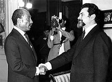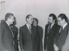 الرئيس المصري السابق أنور السادات مع إلياهو بن إليسار في يوم تنصيبه سفيراً بالقاهرة، 25 فبراير 1980.