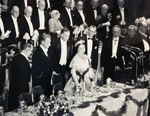 الملكة الأم كضيفة شرف في المئوية الثانية لجامعة كلومبيا في مدينة نيويورك، أكتوبر 1954.