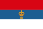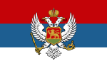 The historical war flags were the krstaš-barjak, plain flags with crosses in the centre. The Montenegrin war flag used in the Battle of Vučji Do (1876) was red with a white cross pattée in the centre and a white border, and this flag was adopted from the Serbian war flag in the Battle of Kosovo (1389) which found itself in Montenegro after surviving knights brought it there.[6] The same flag was used in Cetinje in 1878,[7] upon recognition of independence by the Ottoman Empire at San Stefano. According to the 1905 constitution, the national flag was a tricolour of red-blue-white,[8] which was the Pan-Slavic Serbian tricolour.[9]