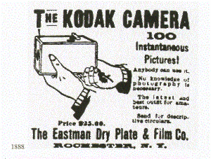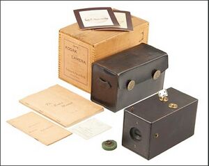 Kodak began as a partnership between George Eastman and Henry A. Strong to develop a film roll camera. After the release of the Kodak camera, Eastman Kodak was incorporated on May 23, 1892.[4] Under Eastman's direction, the company became one of the world's largest film and camera manufacturers, and also developed a model of welfare capitalism and a close relationship with the city of Rochester.[5] During most of the 20th century, Kodak held a dominant position in photographic film, and produced a number of technological innovations through heavy investment in research and development at Kodak Research Laboratories.[6][7] Kodak produced some of the most popular camera models of the 20th century, including the Brownie and Instamatic.[8][9] The company's ubiquity was such that its "Kodak moment" tagline entered the common lexicon to describe a personal event that deserved to be recorded for posterity.[10]
