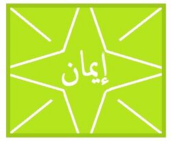 كلمة "إيمان" تتوسط زخرفة جمالية عادية مكتوب بخط عربي عادي.