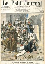 التعليق يقول: اغتيال رجل فرنسي في المغرب: الدكتور موشوم، الطبيب في مستوصف مراكش، يرجمه المواطنون بالحجارة حتى الموت.
