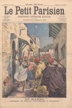 اغتيال د. موشوم، كما صُوِر في الصحيفة الفرنسية المحافظة لو بتي جورنال (يسار) و لو بتي باريزيان (يمين) in 1907.