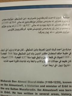 ابن المستوفي وهو مبارك بن احمد شرف الدين (1169-1239) كان مؤرخا ووزيرا في اربيل في عهد السلطان مظفر الدين كوكبري.